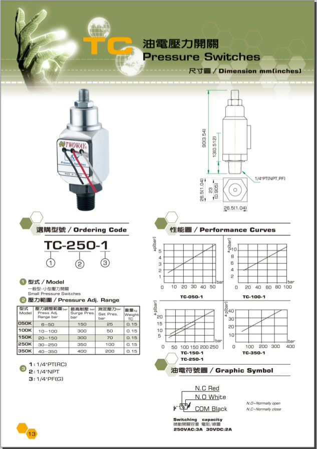 TC压力继电器规格表
